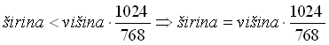 Sedaj imamo koordinate robov zaslona, ki niso nujno v pravem razmerju z širino in višino ekrana, zato jih je potrebno korigirati, tako da je