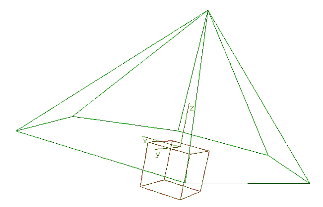 Slika 8 Primer centralne projekcije z enim bežiščem (perspektiva)