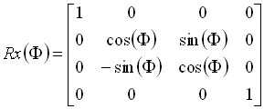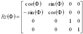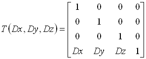 Vektor, ki ga množimo z matrikami pa je četrte dimenzije in je sestavljen iz treh koordinat točke, četrti člen pa je 1: