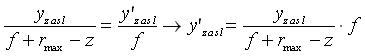 Nove koordinate perspektive izračunamo s pomočjo podobnih trikotnikov: